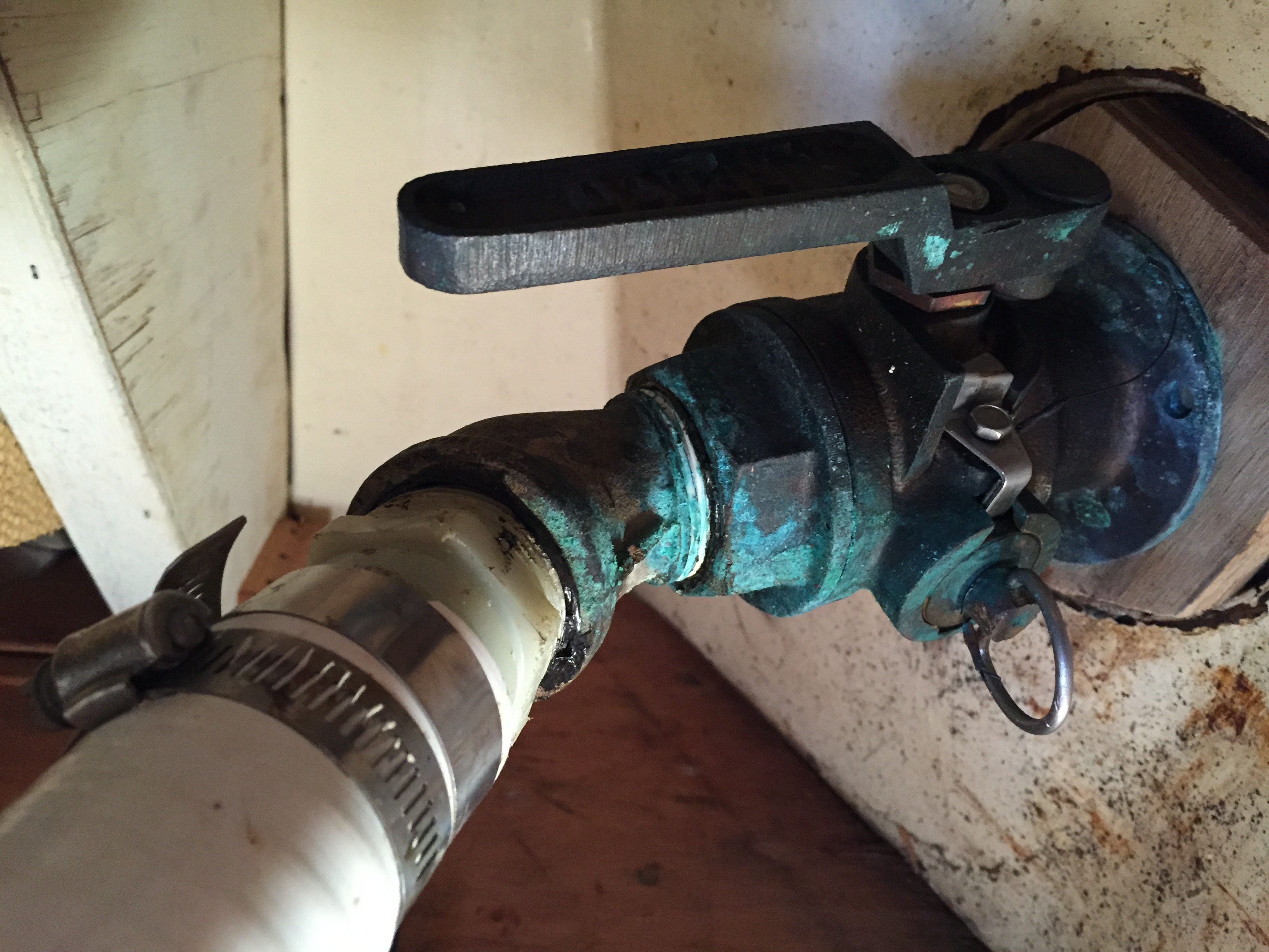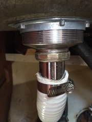 The sink drain is made of standard plumbing parts, available at any hardware store. This unfortunately means that the drain tailpiece is a very thin tube of chrome-plated brass. Keep an eye on this, as it will corrode in the marine environment. This could result in a large amount of water inside the boat.