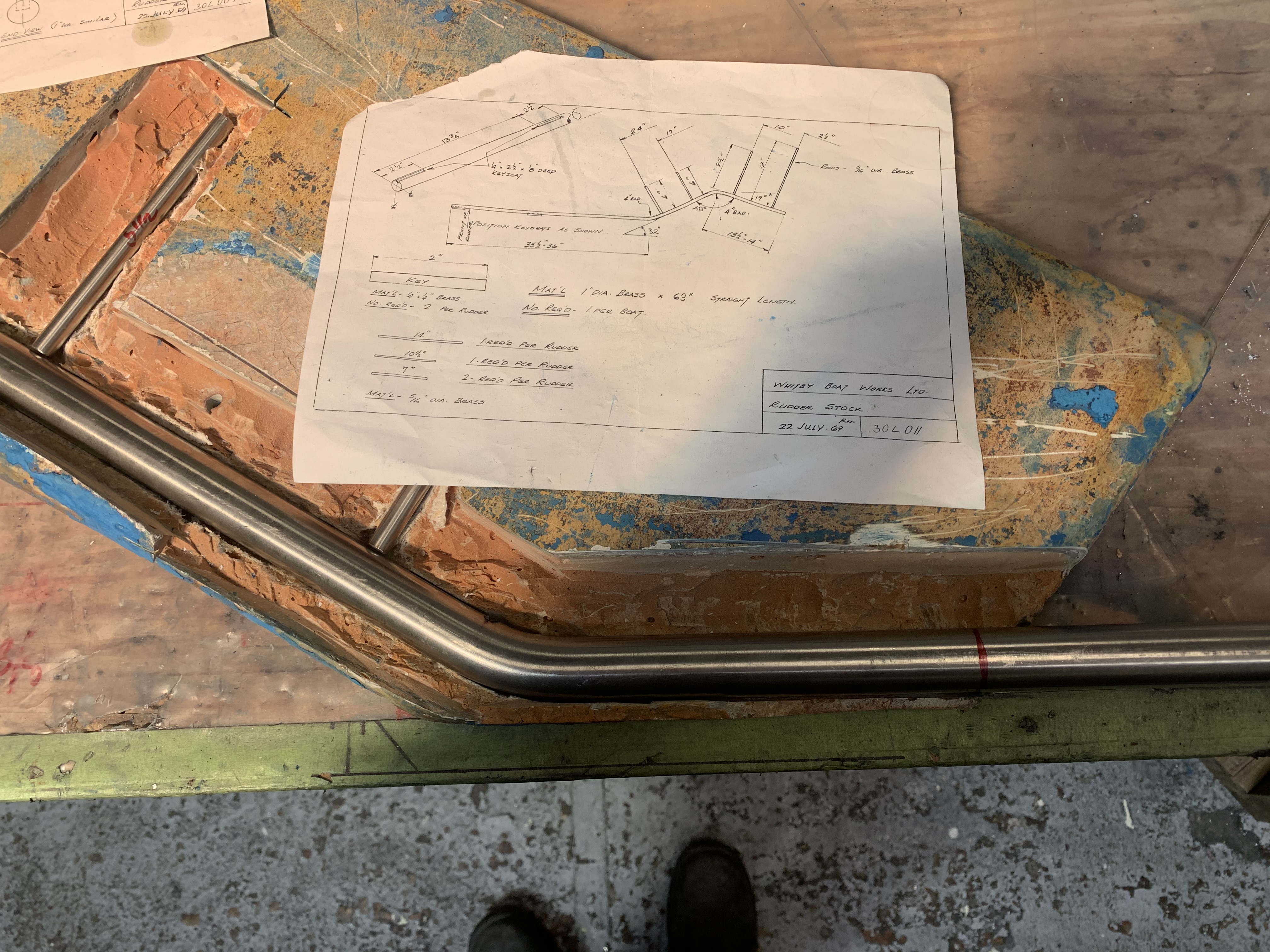 My boat is a 1972 boat, #495. Some of the following my not be relevant to your boat. The rudder shaft was in 3 parts.
