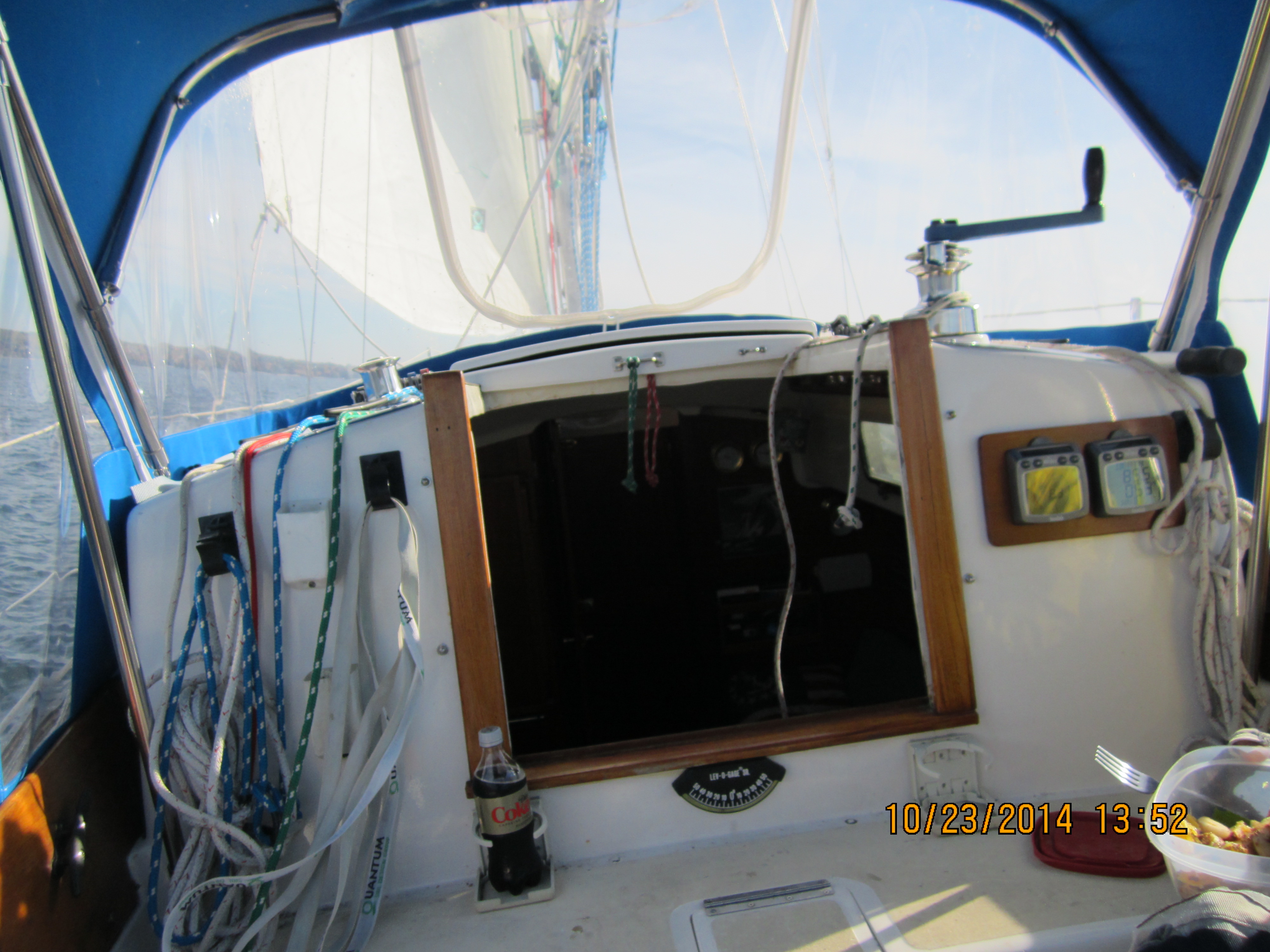 2014-01_Port_Side_Overall_View_2014_IMG_0491.jpg 2014-02_Port_Front_Quarter_View_2014_IMG_0494.jpg 2014-03_Close-up_Port_Showing_Handhold_and_partial_Side_Curtain_2014_IMG_0492.jpg 2014-04_Frontal_View_2014_IMG_0490.jpg 2014-05_Detail_Starboard_Exterior_Handhold_2014_IMG_0467.jpg 2014-06_General_Interior_2014_IMG_0462.jpg 2014-07_Forward_Port_Interior_Detail_Handhold_Attachment_Points_2014_IMG_0473.jpg 2014-08_Forward_Port_Interior_Detail_of_Fastners_2014_IMG_0484.jpg 2014-09_Bimini_Window_2014_IMG_0483.jpg 2014-10_Aft_Port_Edge_of_Bimini_2014_IMG_0486.jpg 2014-11_Main_Hoisted_Clearance_2014.jpg 2014-12_David_Enjoying_Himself_2014_IMG_0482.jpg