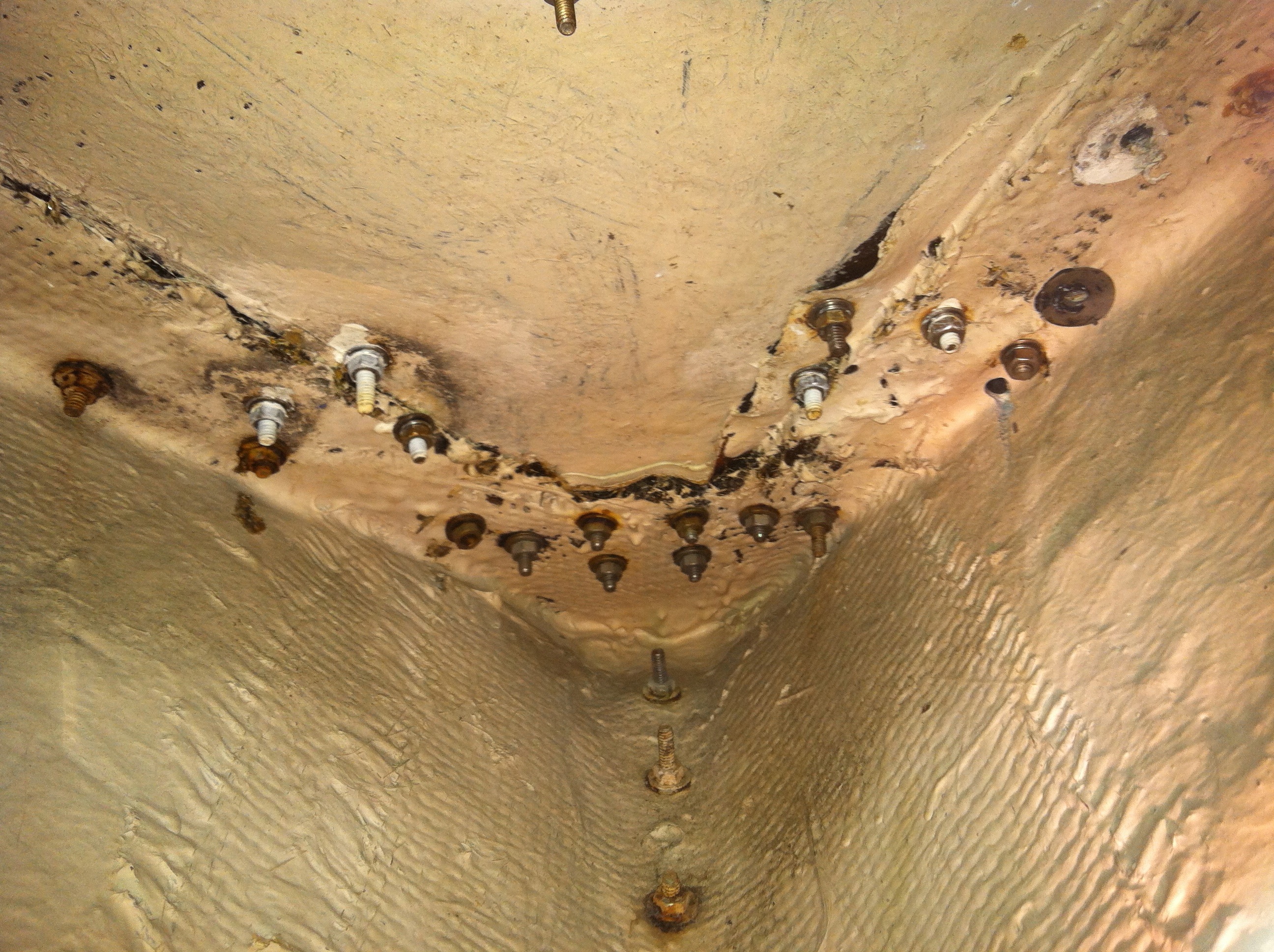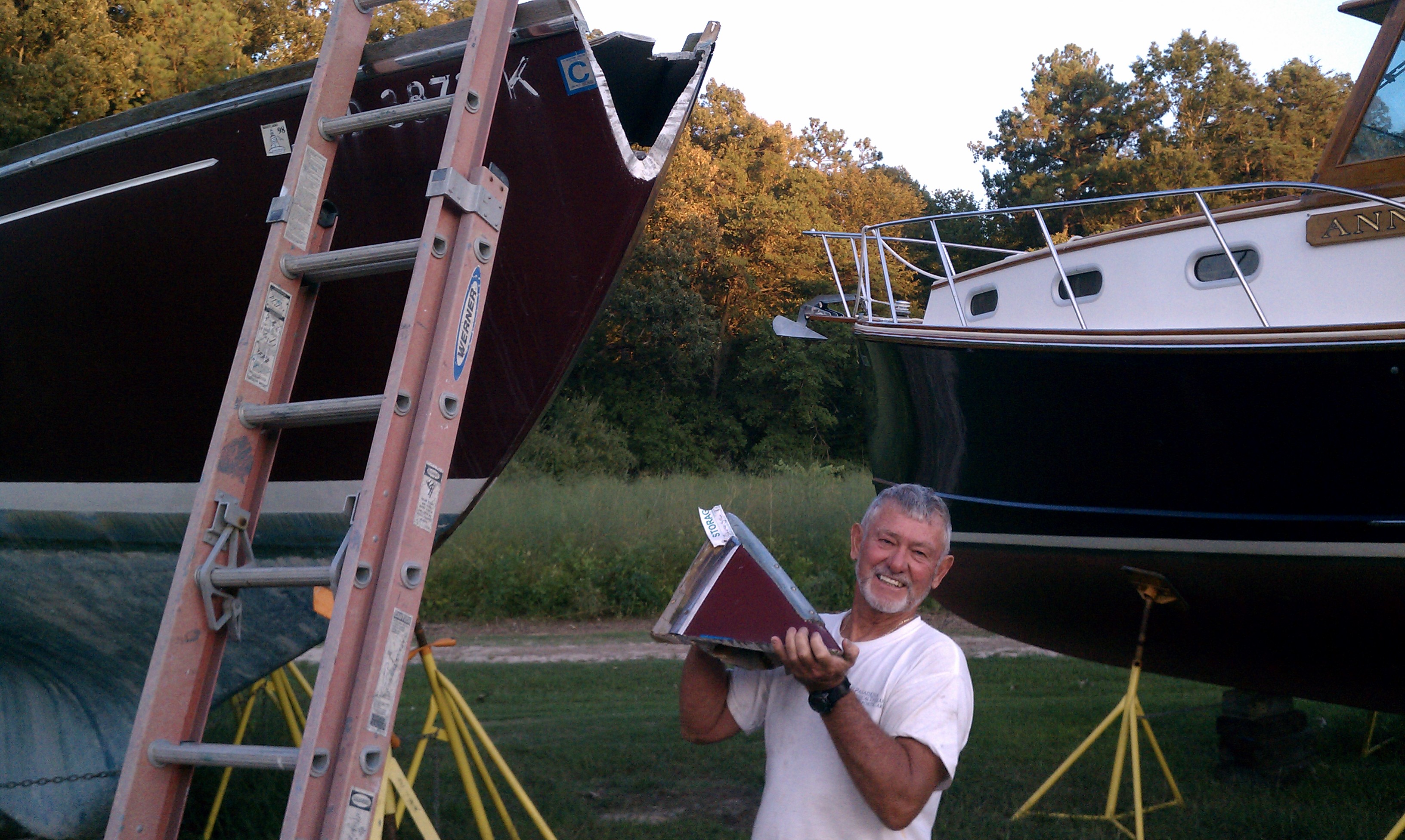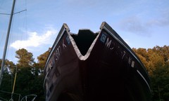 Stranger with the bow cut off. This shows the cross-section of the hull-deck joint on the older boats.
