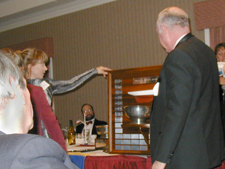 There were Racing trophies... This one is the Bruce Rankin Memorial Trophy, built by Bob Chambers and awarded to the winning team in the Canadian-American Team Races. Photo copyright 2003 by George Dinwiddie & Gail DeMoss <- Previous ~ Contents ~ Next -> |