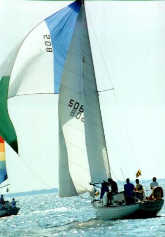 In 1998, our Canadian friends decided to teach the Americans how spinnakers are flown on the Great Lakes. Well, Tony, you said you wanted a good picture of your boat.