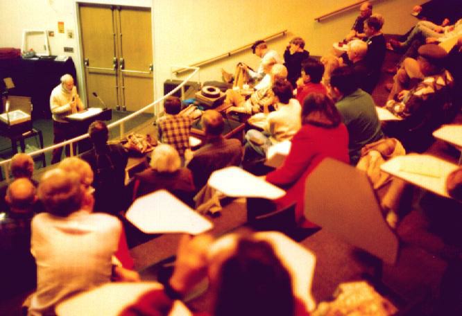 Each February, The Chesapeake Bay Alberg 30 Association holds a series of four seminars, one on each Saturday in February. There's a seminar on racing, one on cruising, another on maintenance and a final catch-all category called "potpourri" These seminars, in addition to discussing the upcoming racing and cruising schedules, are a great vehicle for sharing information on all aspects of boat ownership. Who could forget Karl Gerhard's lesson on spinnaker handling. With a plywood "boat", a large fan and a real miniature spinnaker, he taught the basics of using this sail to novice racers and cruisers who didn't know what to do with this sail that came with their boat. I think some of the experienced racers learned a trick or two, too. In the above picture, Ward Rosenberry is giving an entertaining and informative talk on cruising up to Maine. As you can see, there was a big audience for this mix of practical advice and hilarious anecdotes. The biggest audiences always seem to be for the maintenance seminar. It's not unusual for people to drive long distances, say from Boston, to learn more about the care and feeding of their boats. There are some real experts in the association, and they're more than willing to share their wisdom. As this seminar generally concentrates on things that can go wrong, it can be pretty scary. People have come away thinking that their boat might sink at any minute. Fortunately, that's not the case (if you've kept up with a few basic items), and these boats are very sturdy and reliable. You'll find some pictures, and associated information, from various Maintenance Seminars in the maintenance section. There's one other aspect of these seminars. The association's annual dinner is in January and the sailing schedule doesn't start until late April. The seminars provide an excuse to get together and spend time with old friends (and meet a few new ones) in the Winter doldrums. Consequently, there's always an "aftergathering," generally at someone's home, for less focused discussion over food and drink.