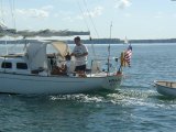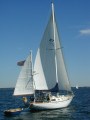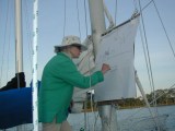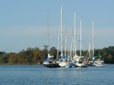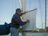 Oh! it sure was a dandy sail and when the sun set behind the highlands and the light clouds all turned a gorgeous crimson we slipped quietly into a little branch and anchored in the deep shadow of the shore and watched a flock of geese wing to the southard. This was what we came for and it was way up to expectations. |