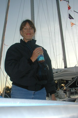 Gail is also enjoying the cruise. (Photo copyright 2001 by George Dinwiddie. All rights reserved. For permission to reproduce, please contact webmaster@alberg30.org)