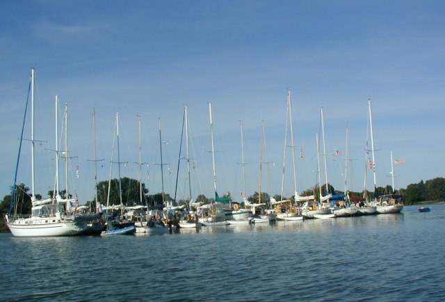 The raft in Island Creek. (Photo copyright 2001 by George Dinwiddie. All rights reserved. For permission to reproduce, please contact webmaster@alberg30.org)
