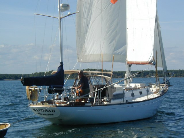 Waconah, wing and wing. (Photo copyright 2001 by George Dinwiddie. All rights reserved. For permission to reproduce, please contact webmaster@alberg30.org)