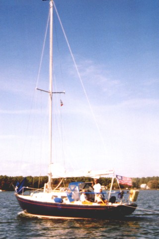 Calypso motoring in Leadenham Creek. (Photo copyright 2001 by Barbara Palmer)